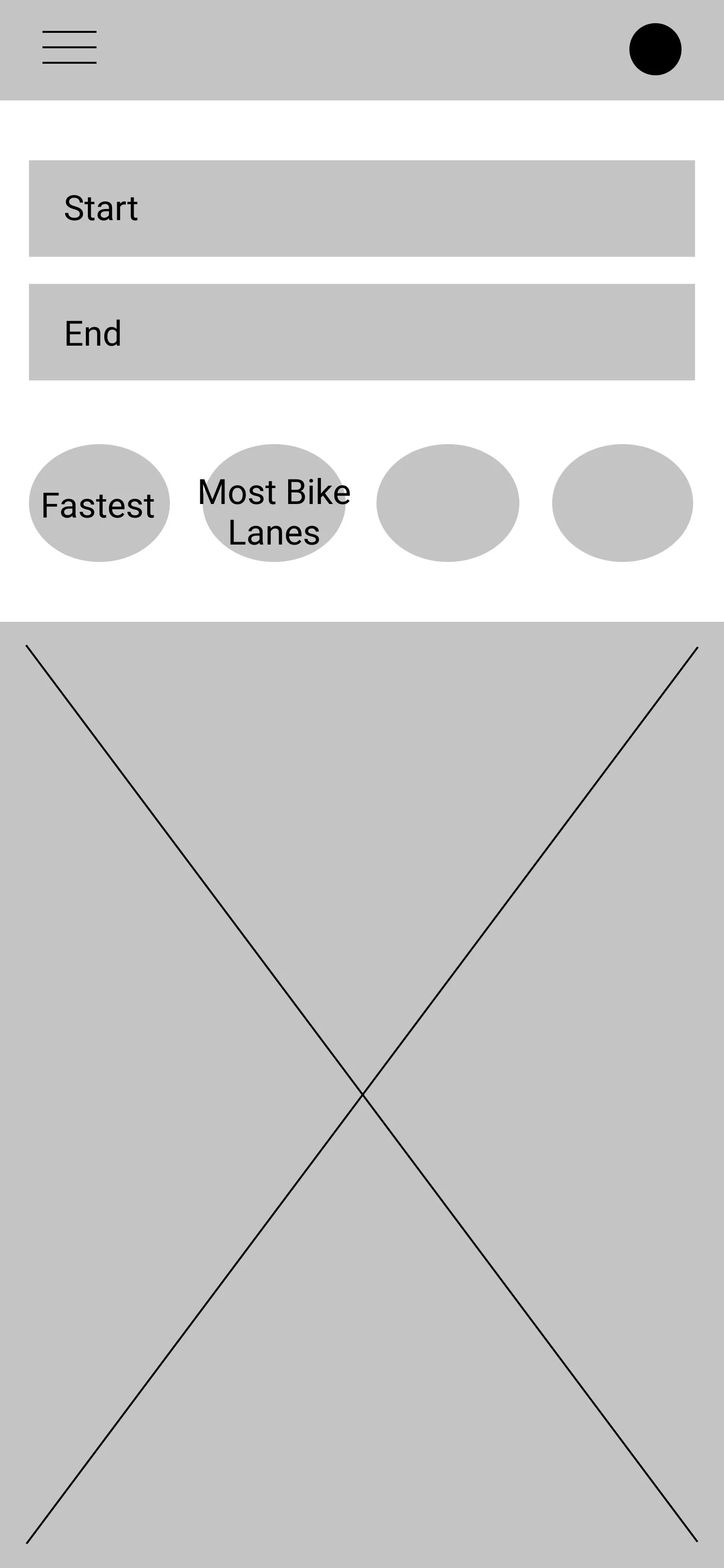 I added this starting screen to the hi-fi prototype to welcome the user and integrate two other functions cyclists wanted: Citi Bike information and weather. Though I had decided Citi Bike integration would be outside the scope of the project, I wanted a button included as a mere placeholder for a modified user journey that could be added later.